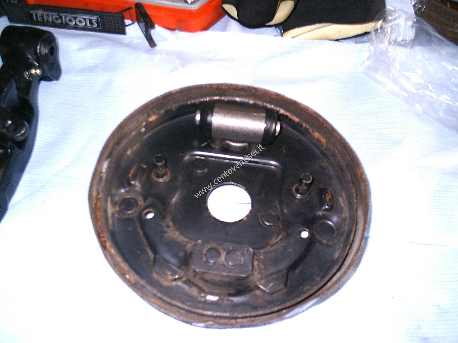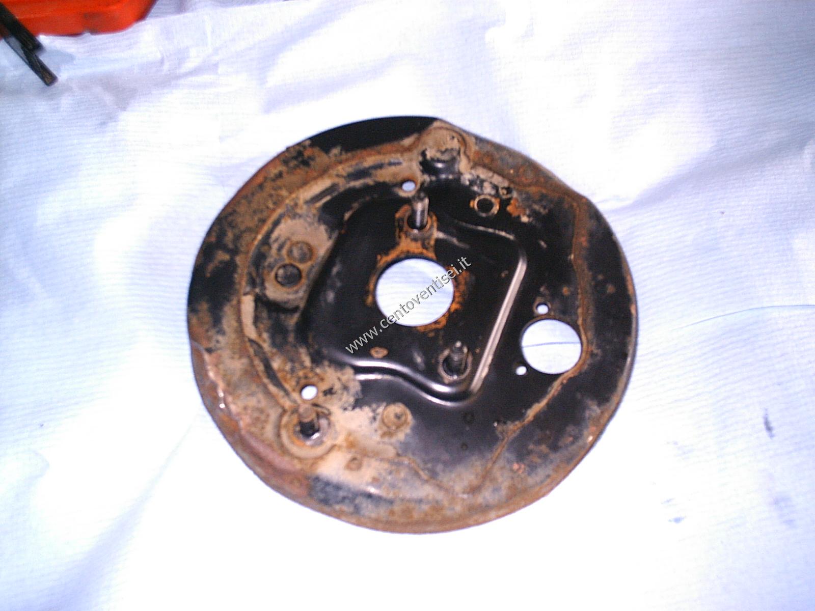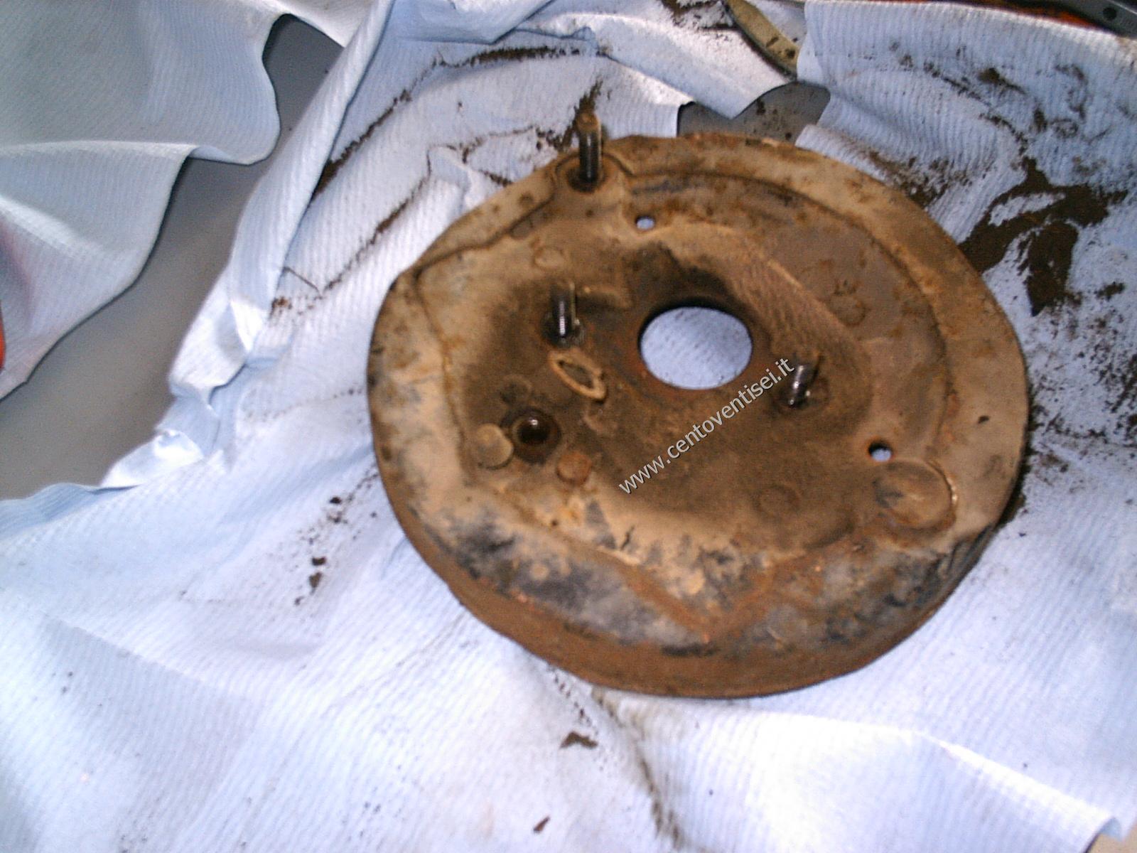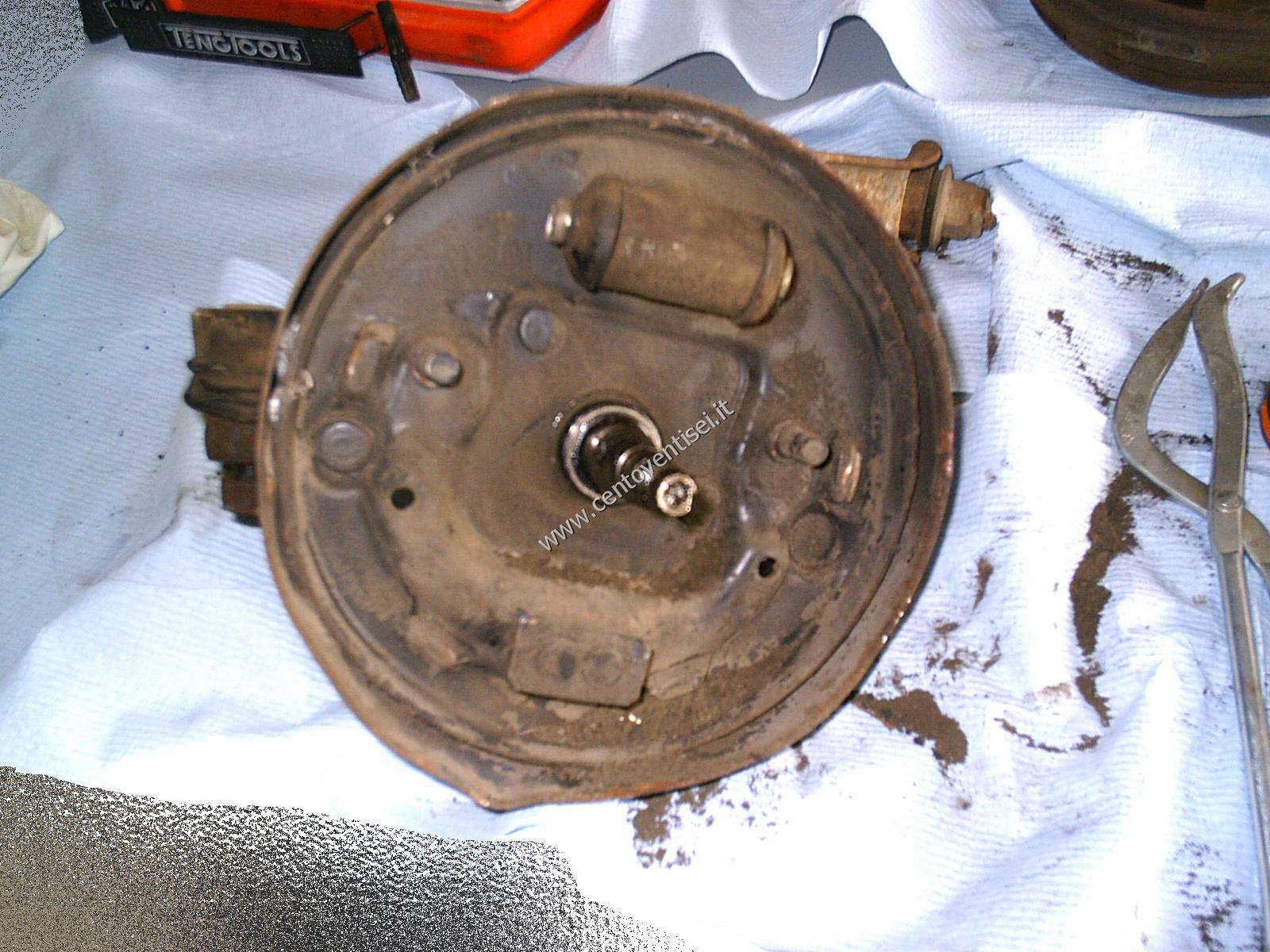 Il piatto porta-ganasce, resta ancora da togliere il cilindretto dei freni.