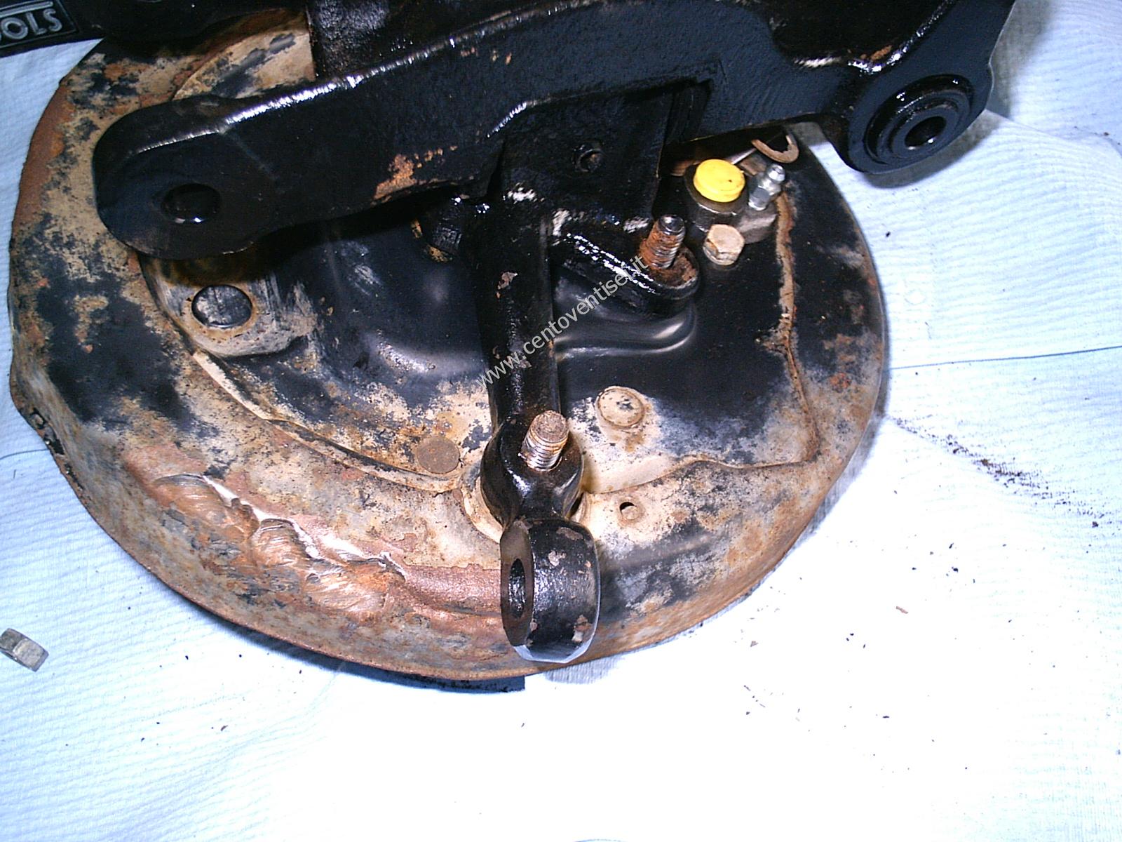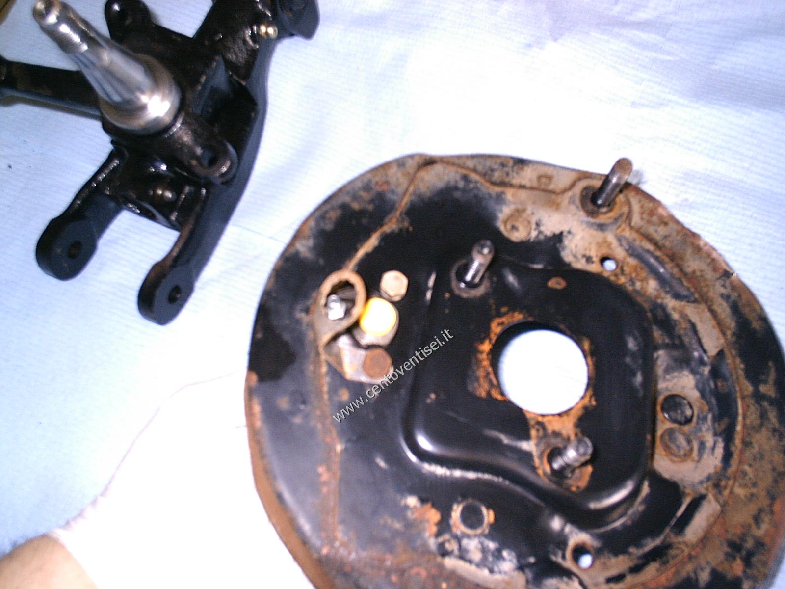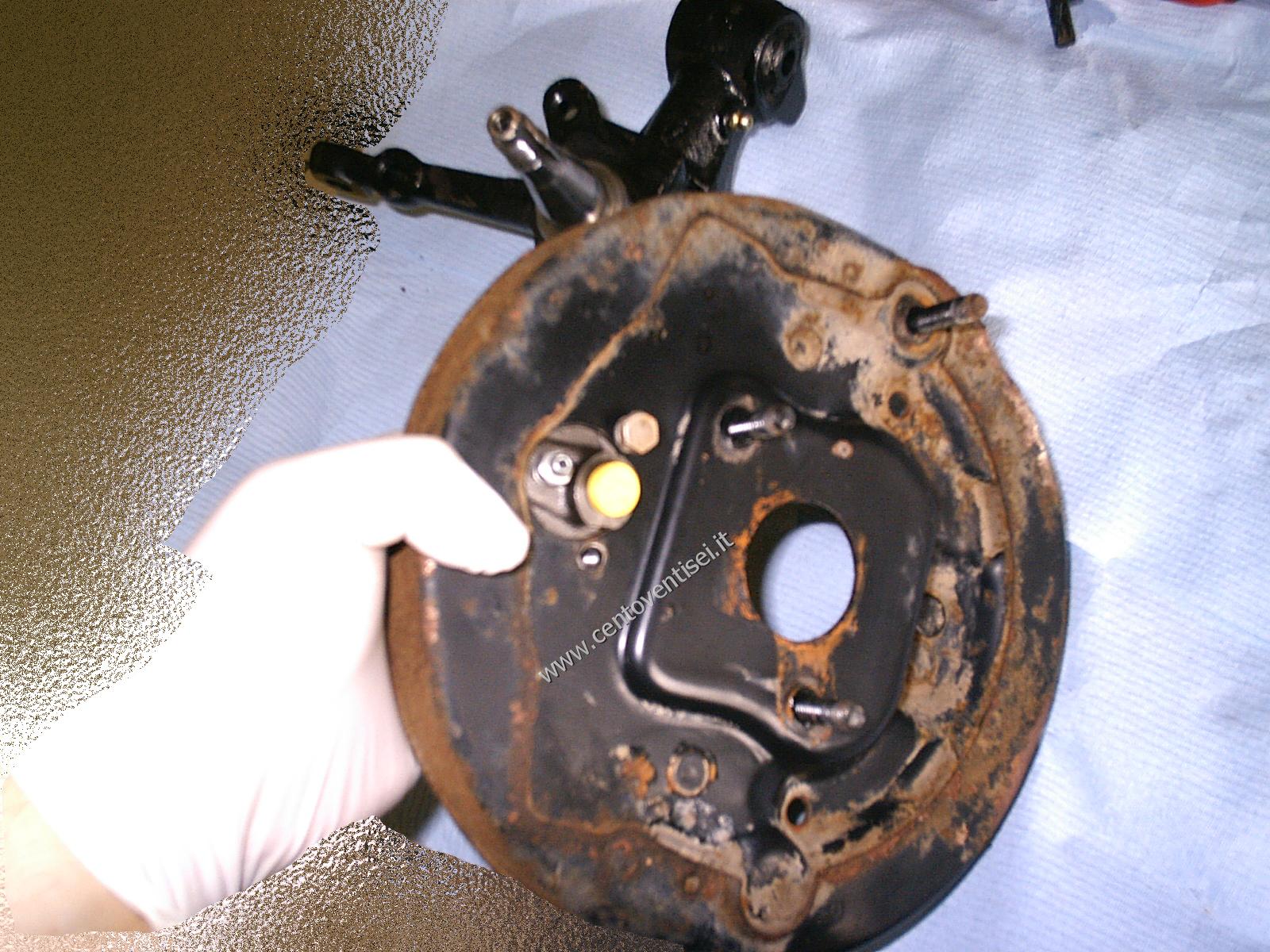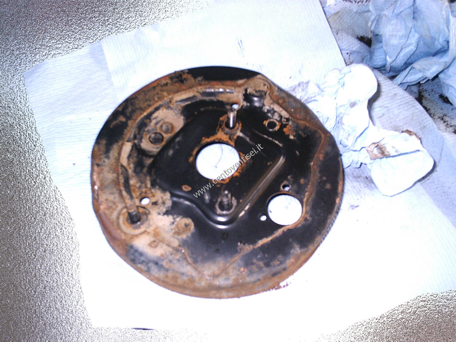 Il piatto porta-ganasce, resta ancora da togliere il cilindretto dei freni.