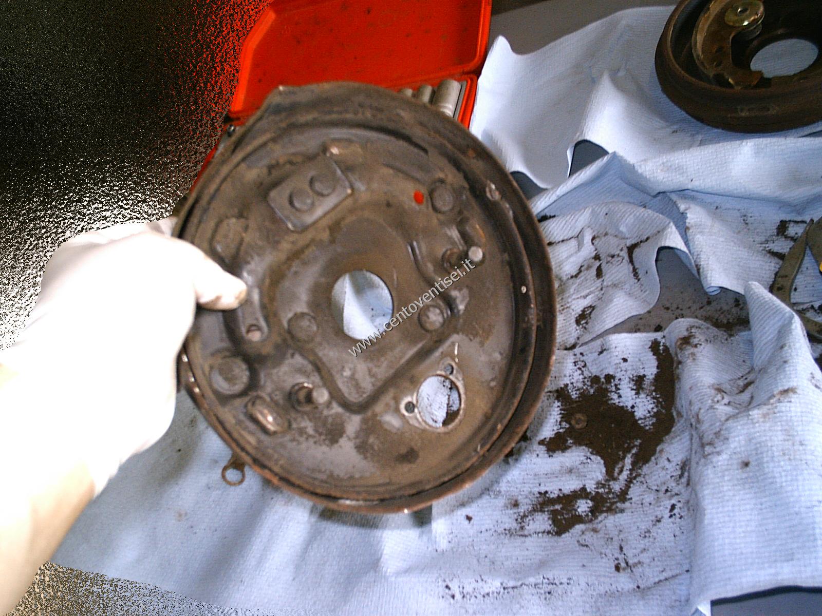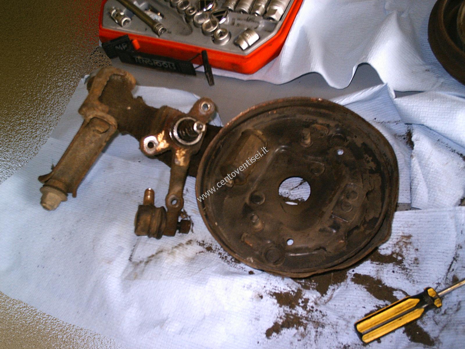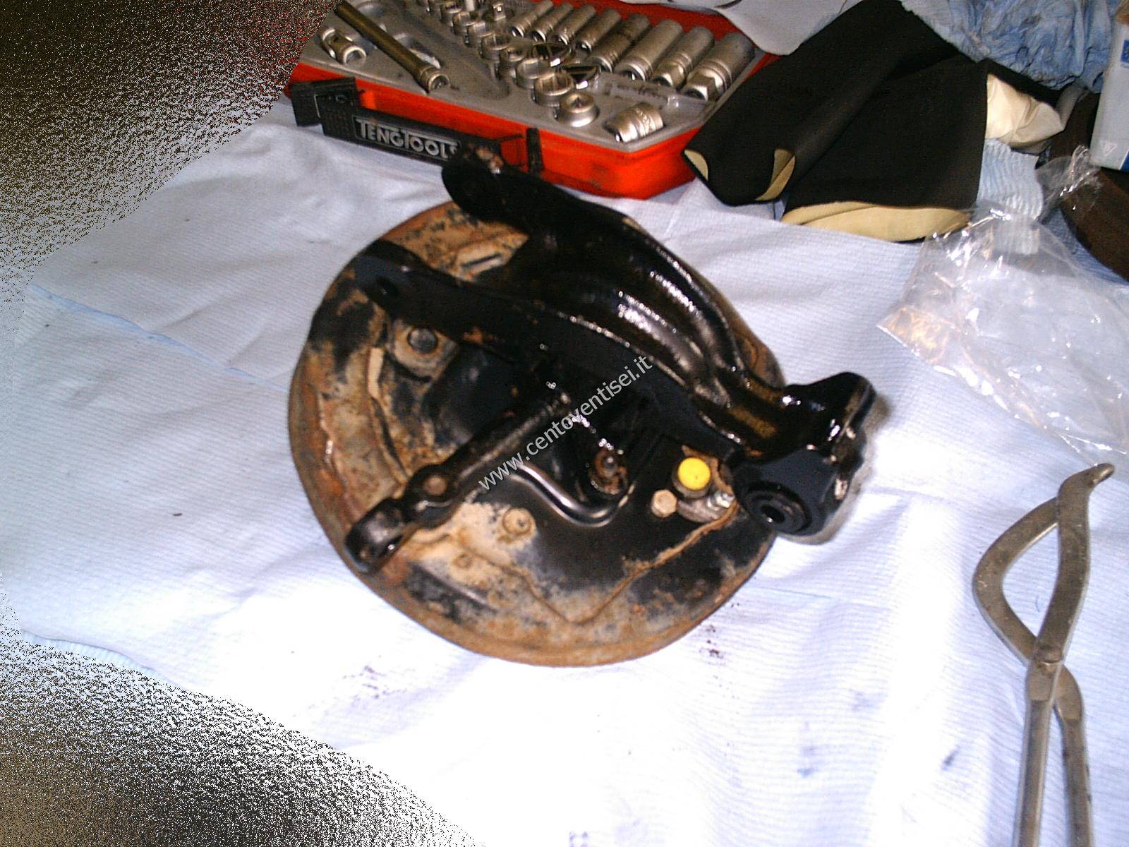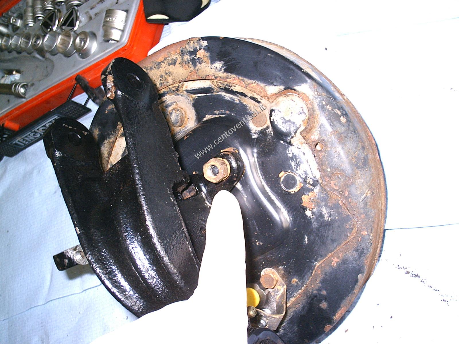 Il piatto porta-ganasce, resta ancora da togliere il cilindretto dei freni.