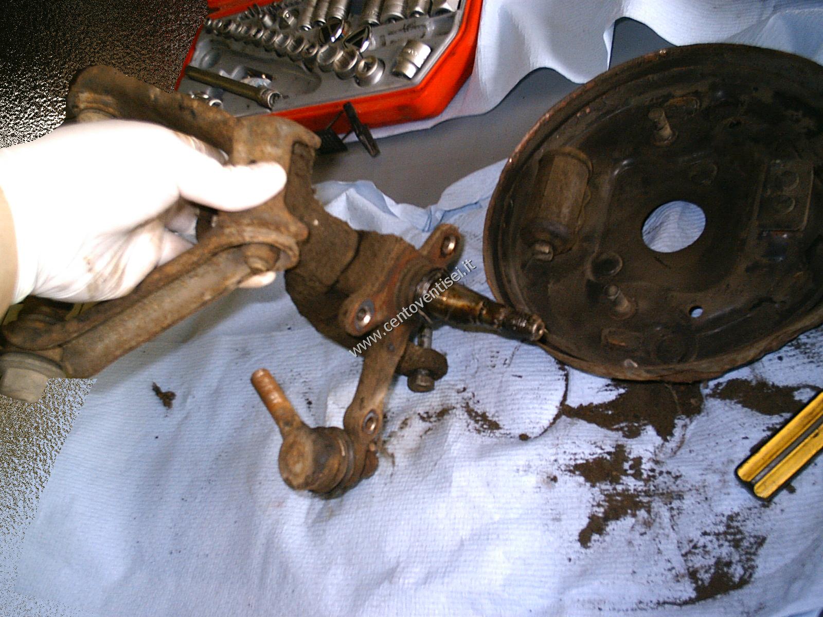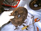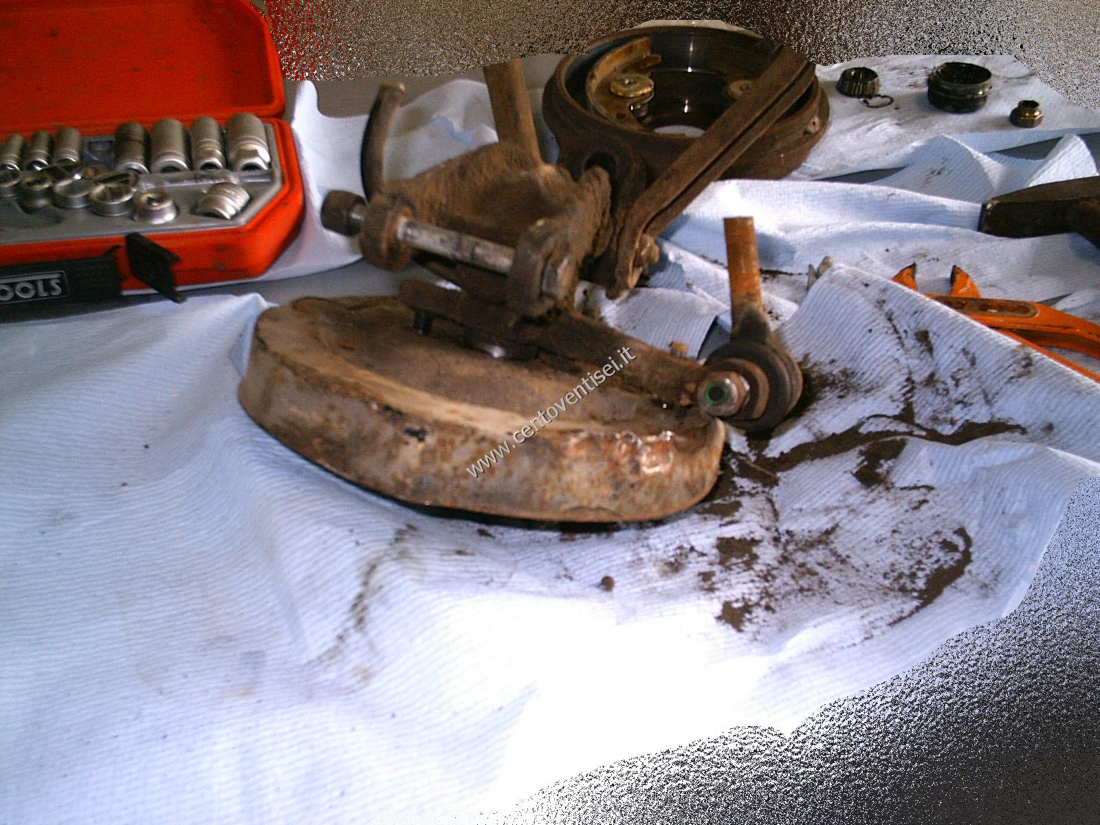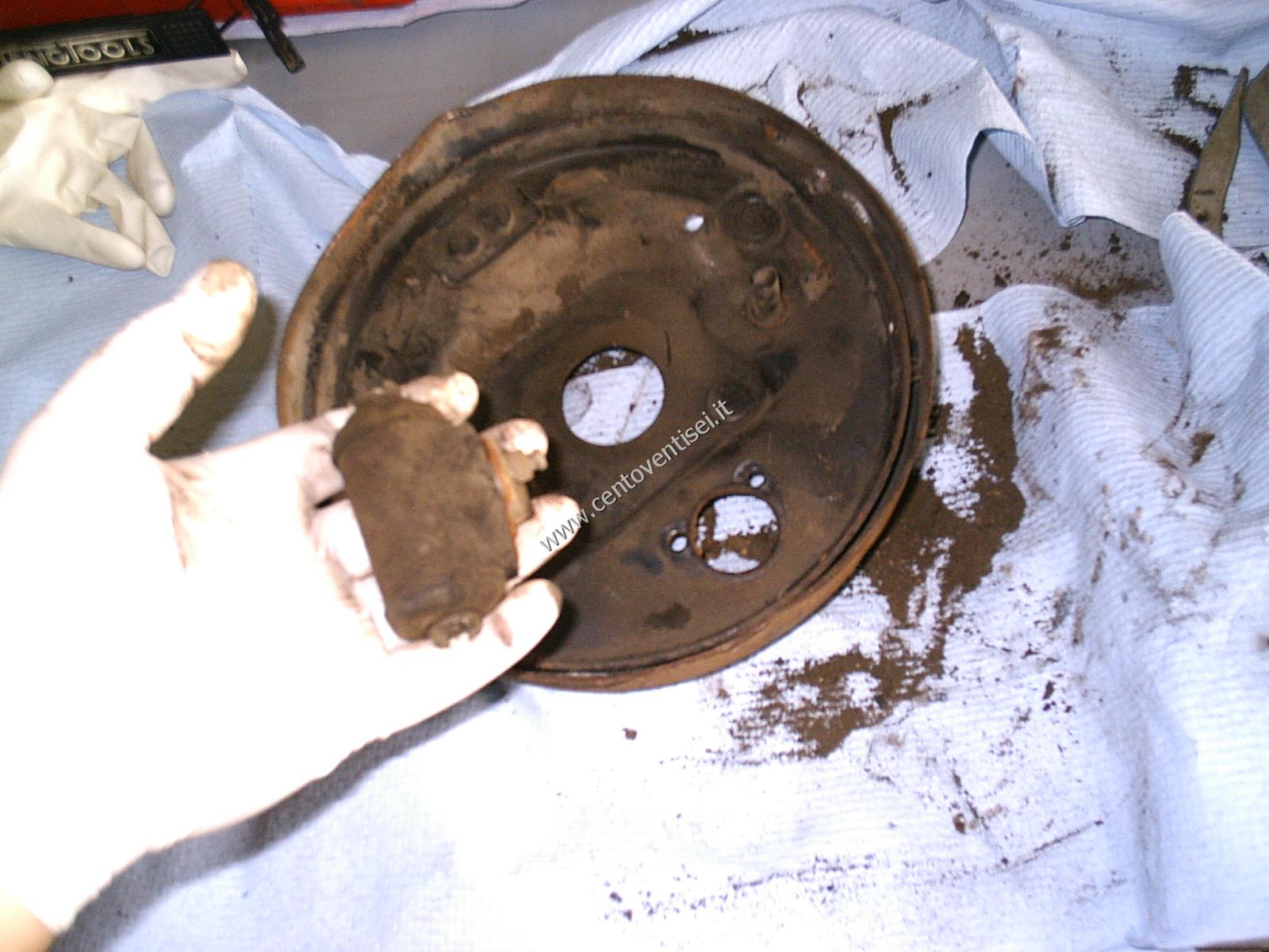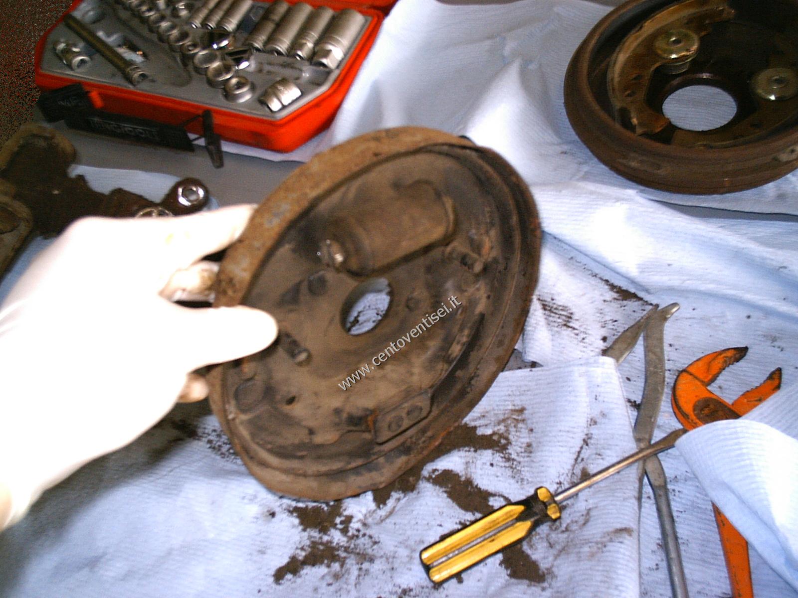 Il piatto porta-ganasce, resta ancora da togliere il cilindretto dei freni.