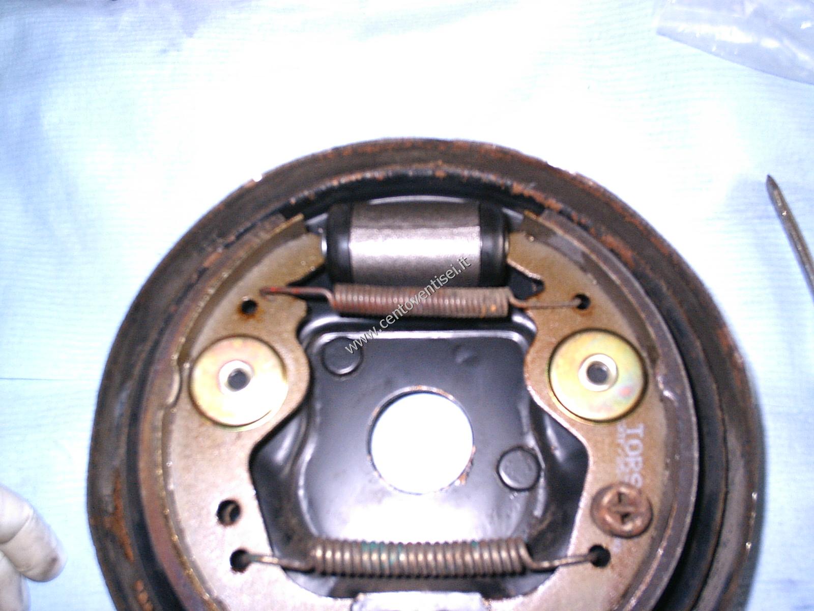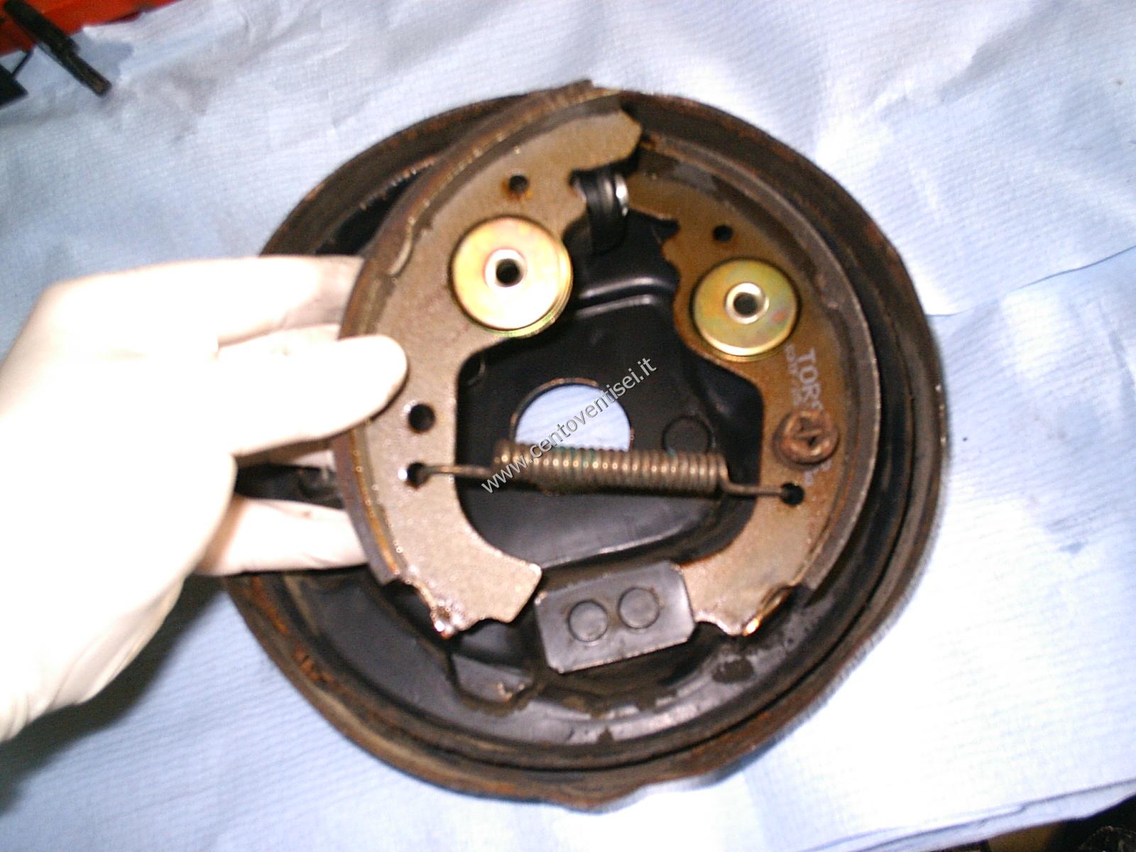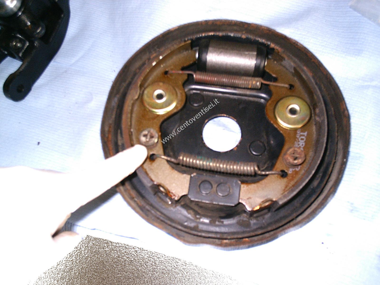 Togliere la mollettina ferma-ganascia, e la ganascia stessa. Attenzione all'altra molla.