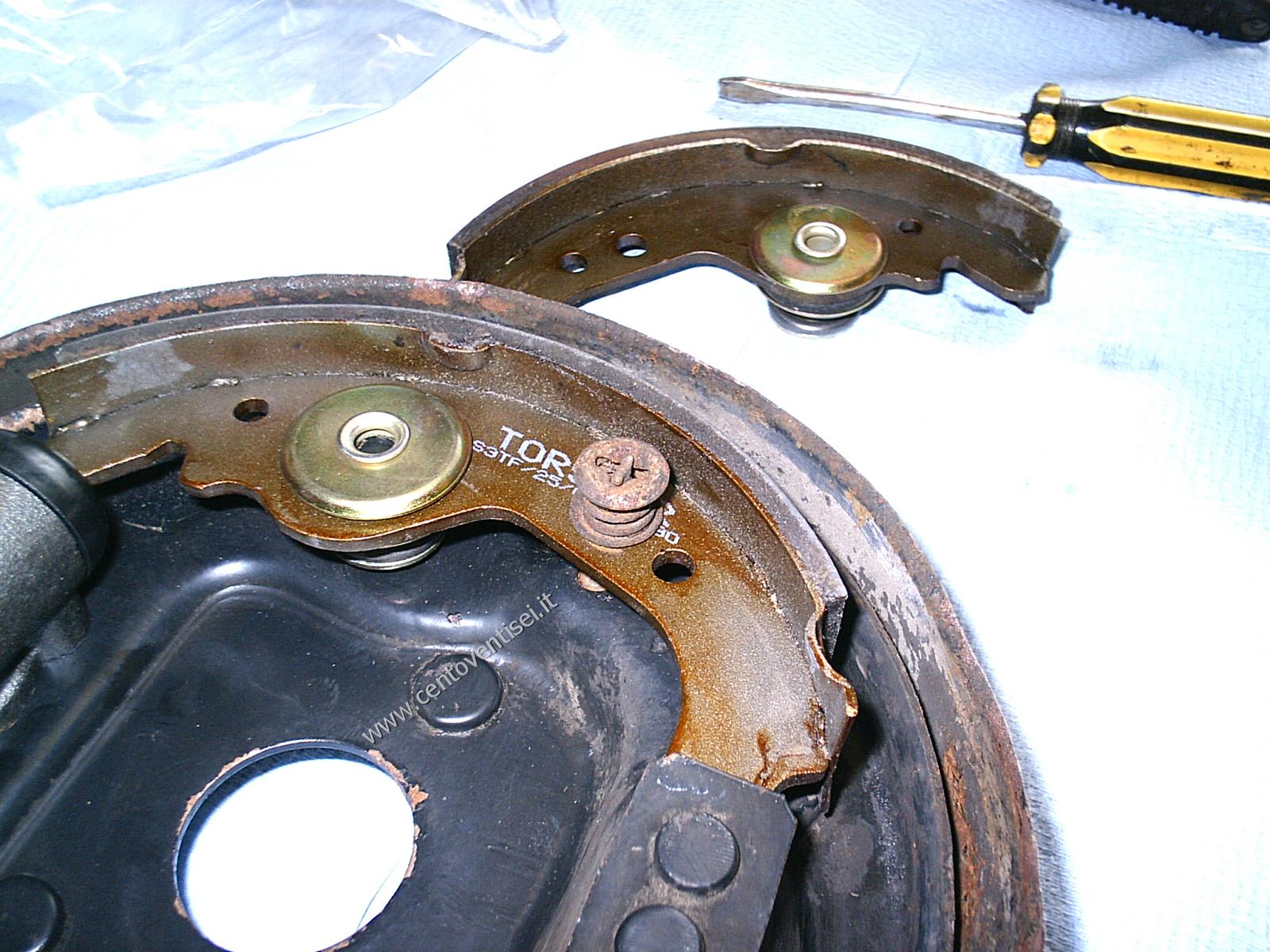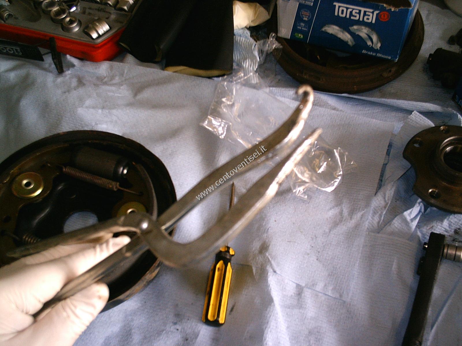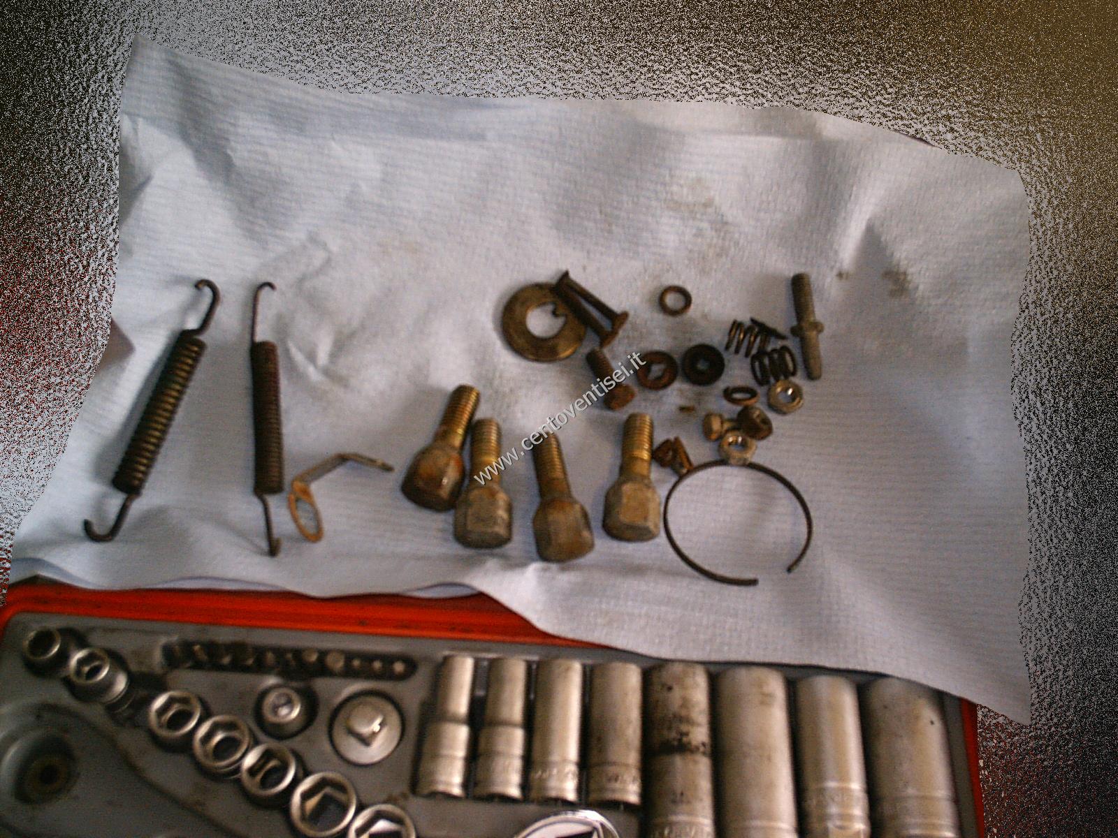 Togliere la mollettina ferma-ganascia, e la ganascia stessa. Attenzione all'altra molla.
