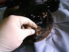 La parte esterna dopo una bella pulita col solvente. Si notano tracce di ruggine.