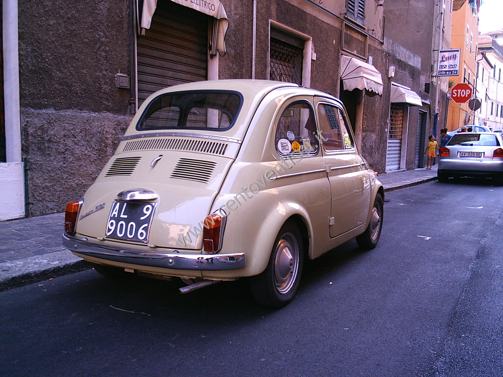 IT: Vista 3/4 anteriore della stessa Fiat 500D.